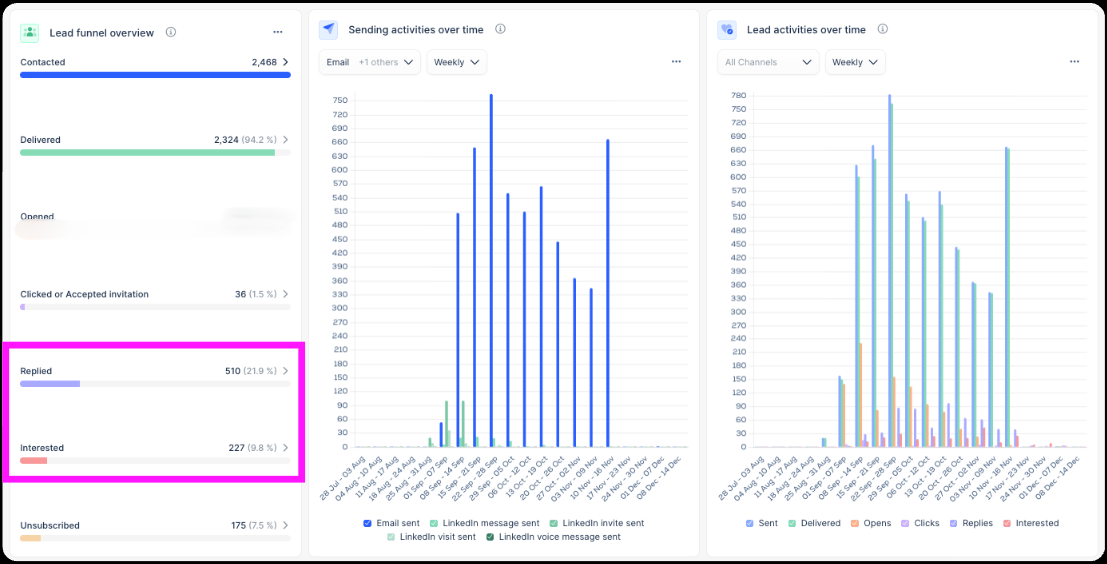 227 interested leads, all composed of doctors and gynecology practices.